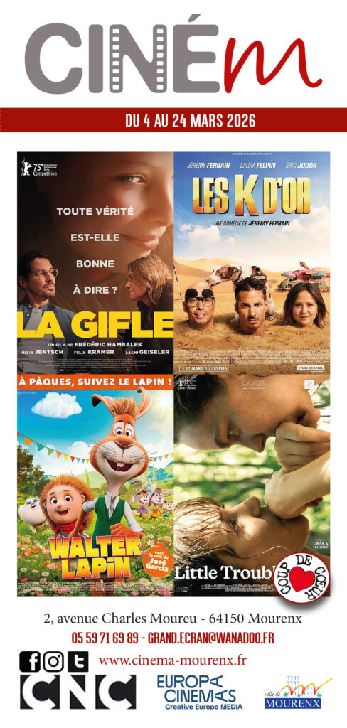 Découvrez la programmation de votre cinéma : Programme : Documentaires : Patrimoine : Jeune public : Découvrez le prochain programme* de votre cinéma : *Les programmes à venir vous donnent l’indication des films à venir. Les horaires peuvent être rajoutés plus tard.