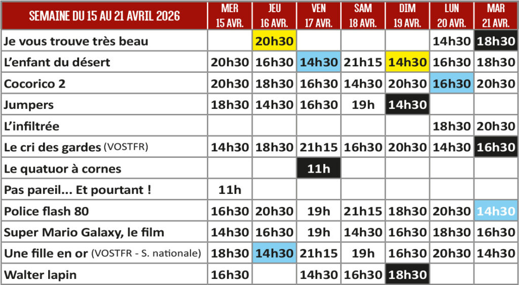 • Horaires